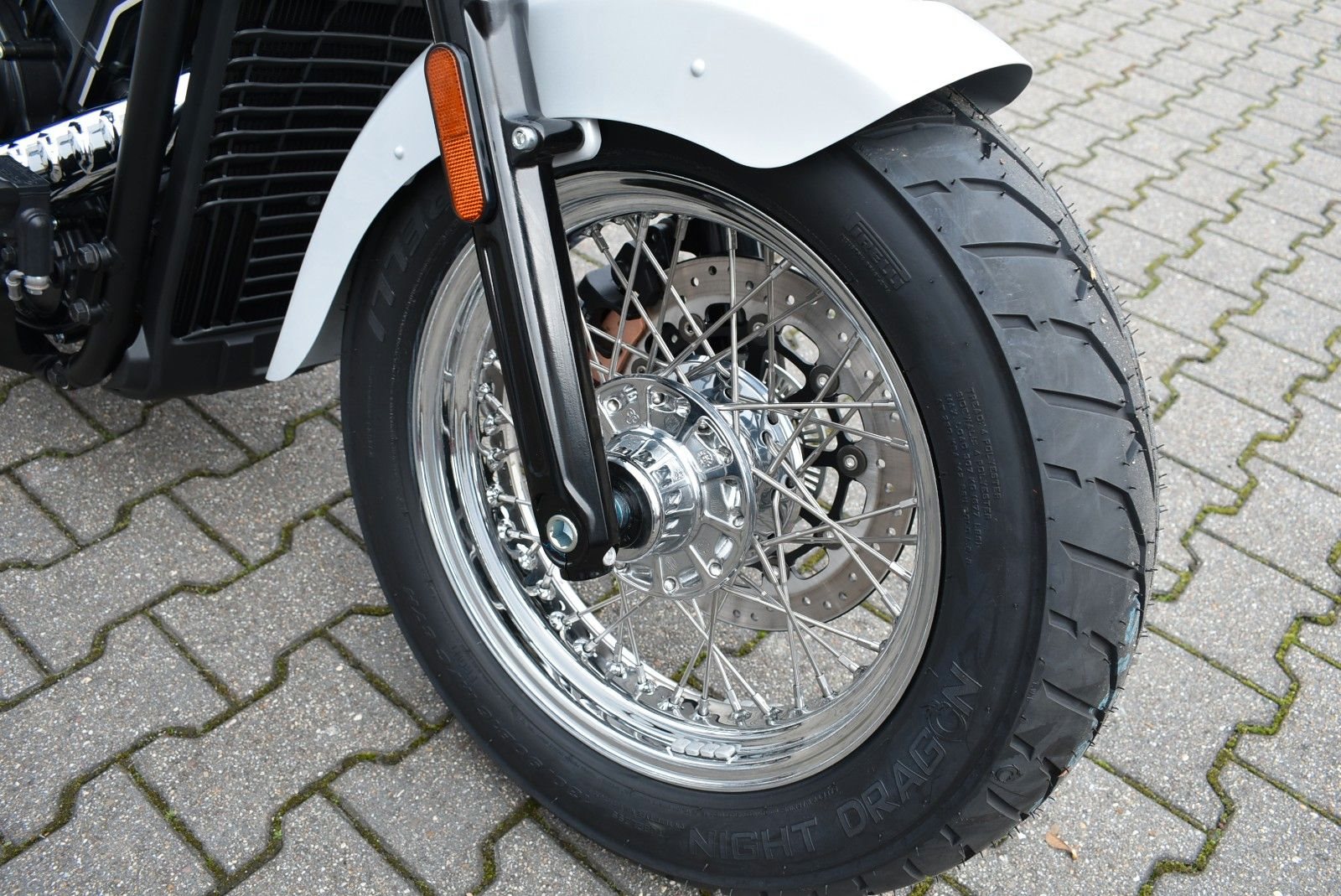 Hochwertiges Chrom, die klassischen, ausgestellten Kotflügel von Indian Motorcycle und die makellose Lackierung ziehen an jeder Kreuzung die Blicke auf sich. Drahtreifen unterstreichen den zeitlosen, authentischen Stil.