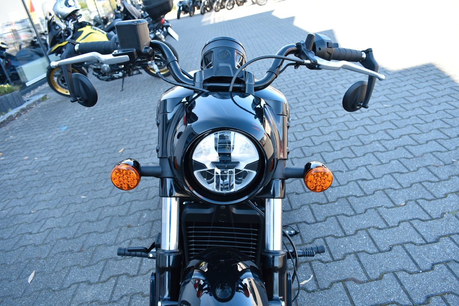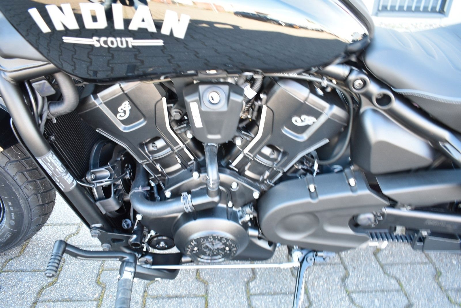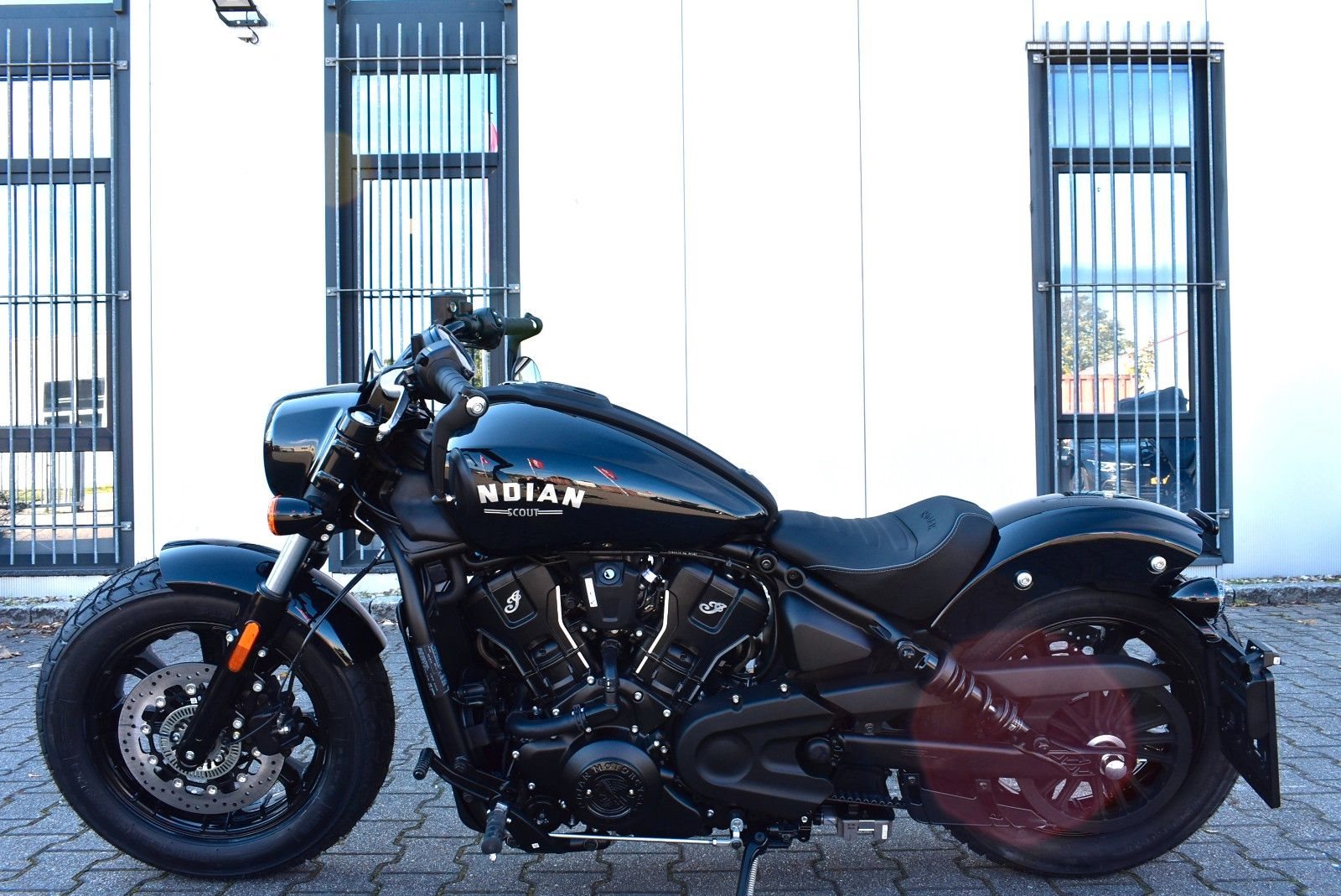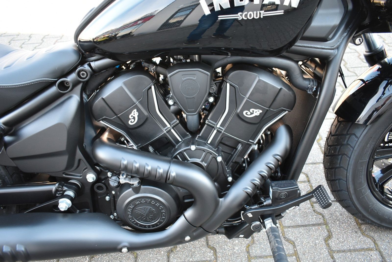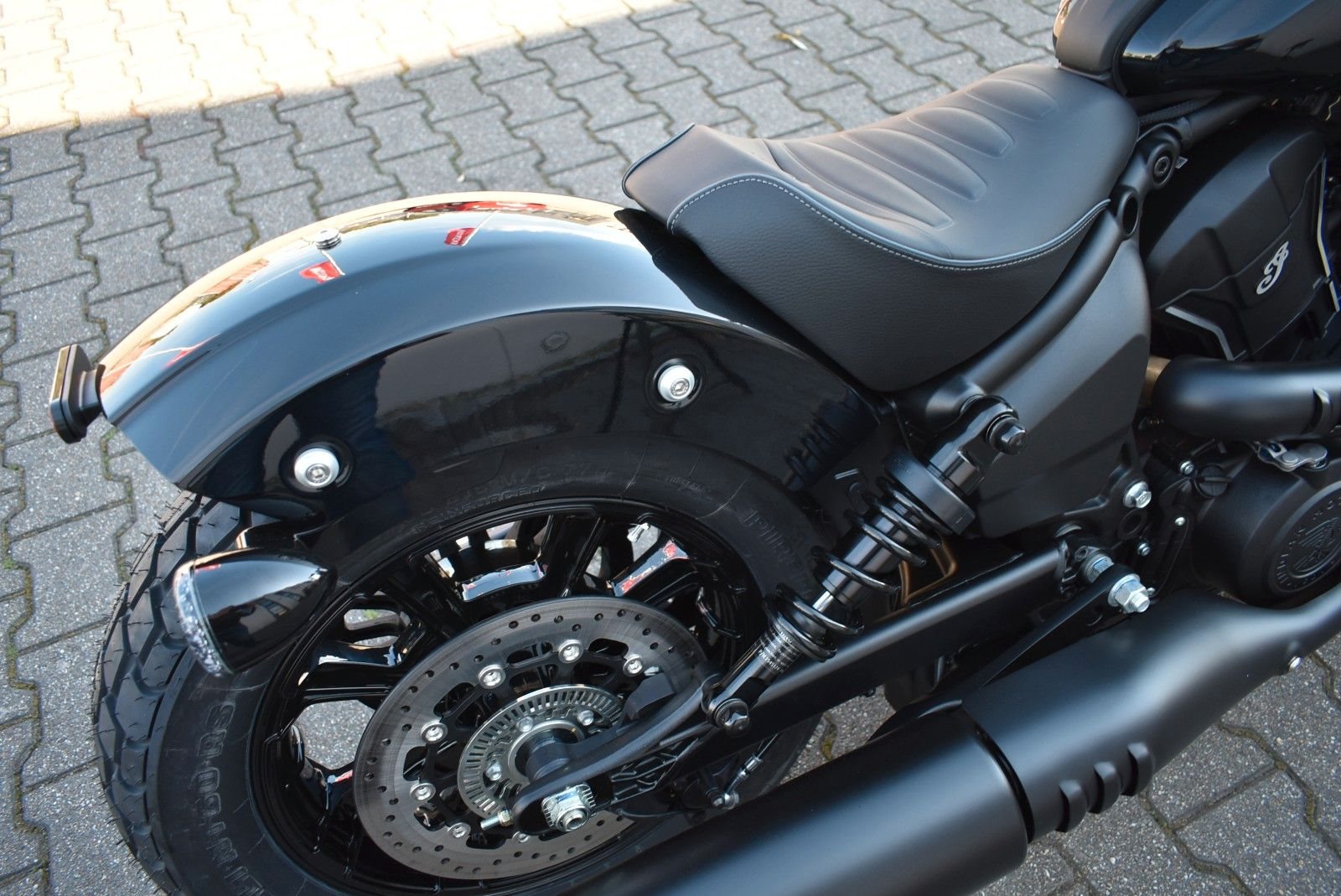 Von vorne bis hinten geschwärzt, mit gechoppten Bobber-Kotflügeln und Scheinwerfergondel, lehnt sich die Scout Bobber hart an den authentischen Bobber-Stil an.